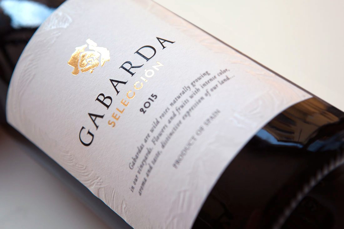 Diseño de marca y etiqueta de vino para “Gabarda Selección”. El diseño del logotipo hace referencia a la gabarda, rosa silvestre que crece de forma natural en sus viñedos. El resultado final es una etiqueta de estética elegante y sutil que consigue comunicar los valores de la marca. Se escogió una tinta plana color oro para el icono del logotipo y la palabra «selección», consiguiendo así transmitir la exclusividad del producto. La etiqueta cuenta con una serie de detalles, como el borde en relieve, que hacen que se perciba un resultado de calidad. Además del diseño de la identidad y la etiqueta de Gabarda Selección, también se llevó a cabo un diseño de packaging de diferentes tamaños y acorde a la identidad de la marca para transportar lotes de botellas.