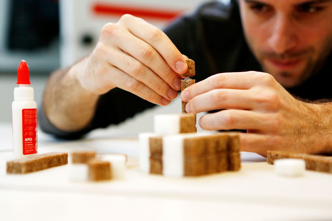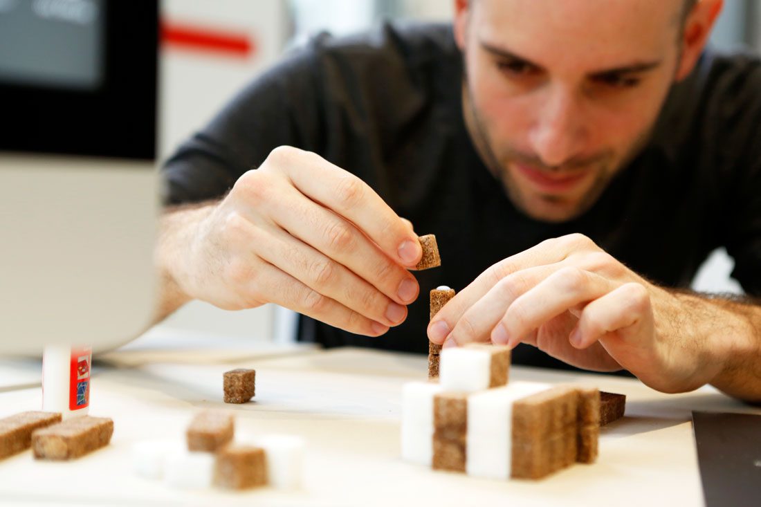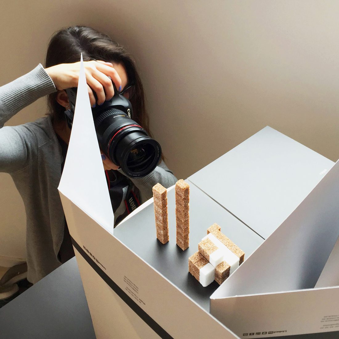 Diseño de la campaña trimestral de Zaragoza Activa a través de la reinterpretación del edificio de La Azucarera con terrones de azúcar.
