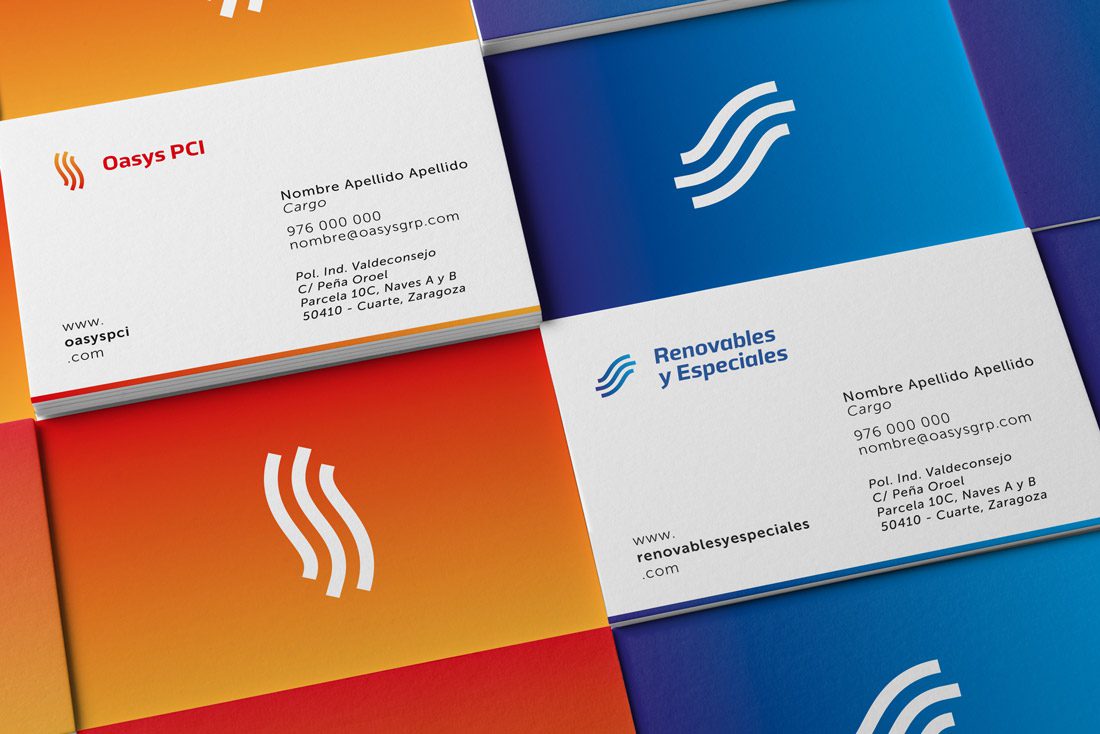 Rebranding para Oasys Group, una empresa dedicada a la protección contra incendios. Oasys Group está formada por dos empresas que forman parte de su arquitectura de marca: «Oasys PCI» y «Renovables y Especiales». Por ello, el diseño llevado a cabo en este proyecto comparte la misma iconografía y tipografía en ambas marcas, relacionándolas entre sí. En el caso de Oasys PCI, que se centra en sistemas convencionales de protección contra incendios, se utilizan las curvas verticales para simular el fuego de forma minimalista. Por otra parte, en el caso de «Renovables y Especiales», dedicada a campos especiales de la protección, se utilizan las curvas horizontales para emular la forma del agua y sus olas.