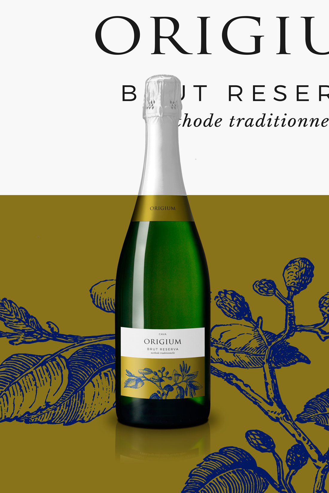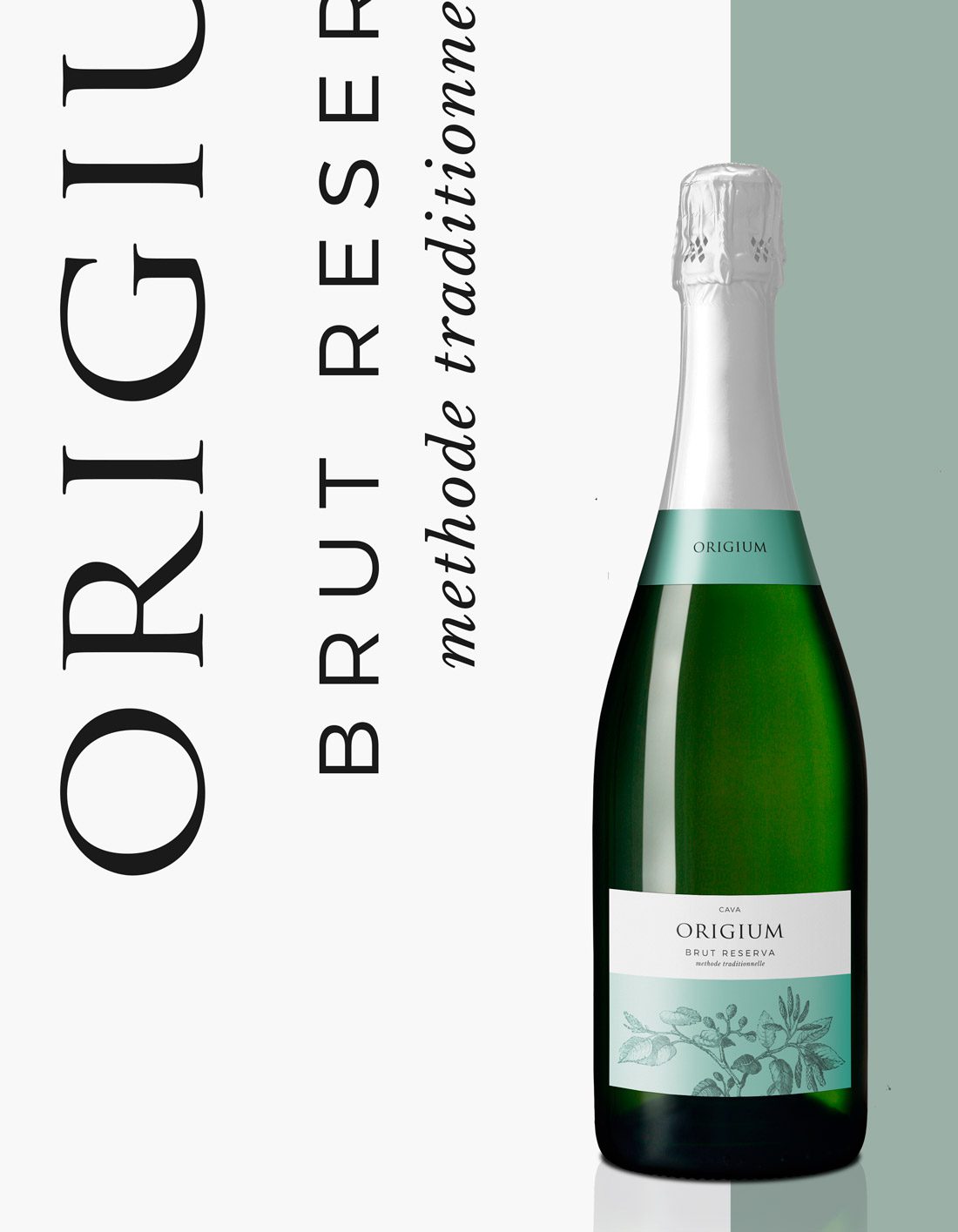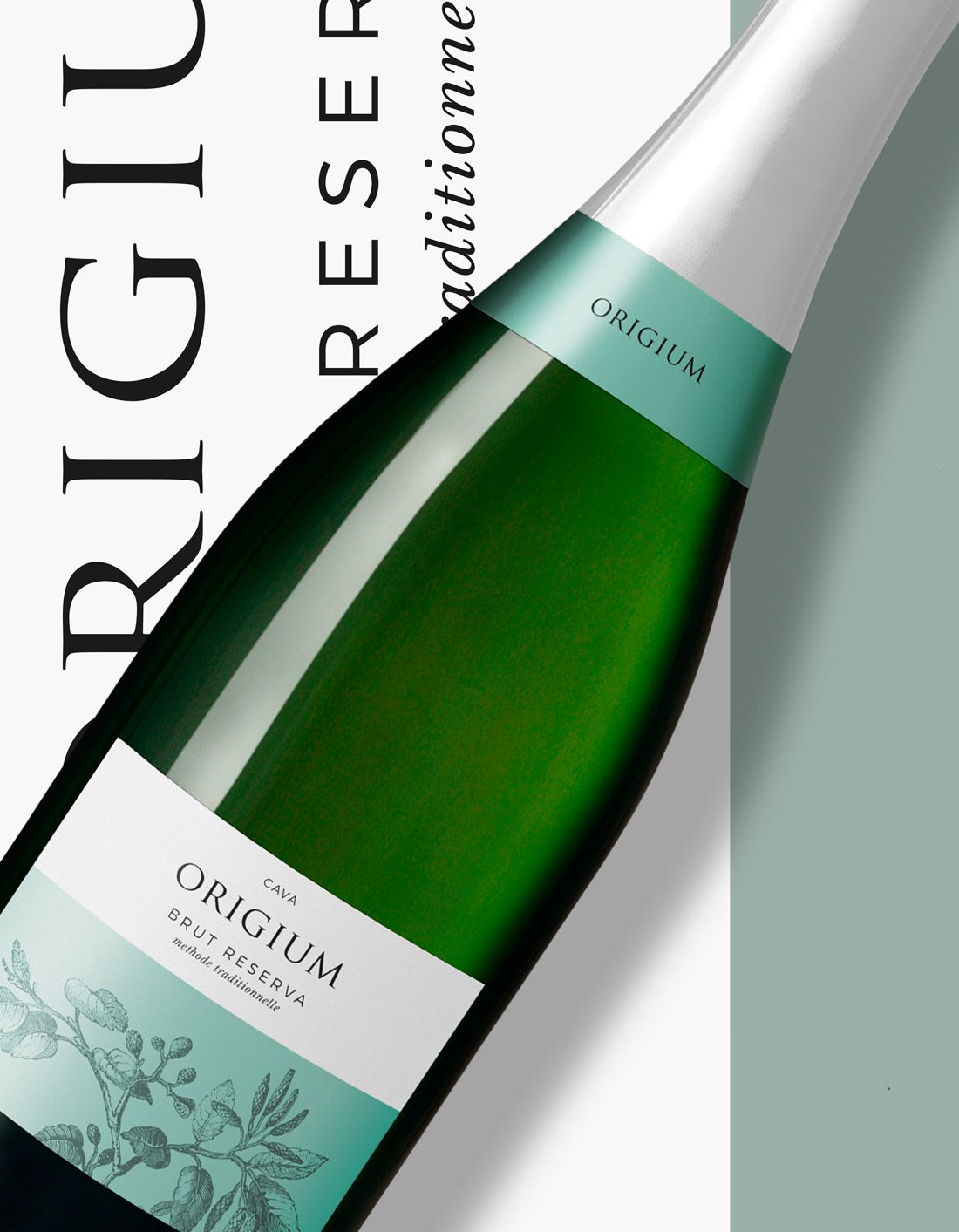 Diseño de marca y etiqueta de cava “Origium». Se trata de un cava Brut Reserva elaborado por el método tradicional. La etiqueta diseñada contiene una serie de elementos naturales que ponen en alza su valor ecológico y tradicional. Dichas ilustraciones, acompañadas de una elegante tipografía con serifa y una combinación de colores armónicos, da como resultado una etiqueta que consigue transmitir los valores de la marca y diferenciarla de las demás.