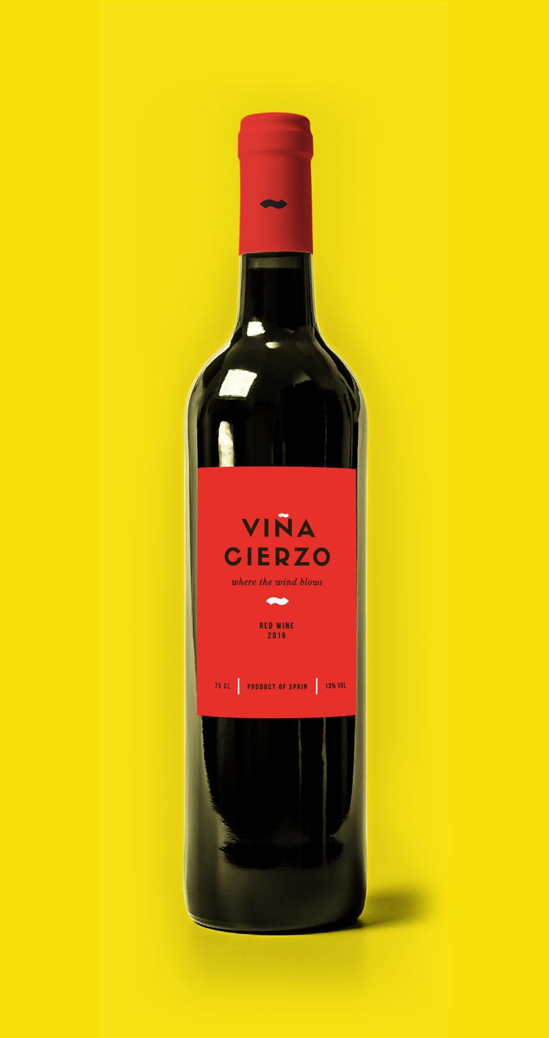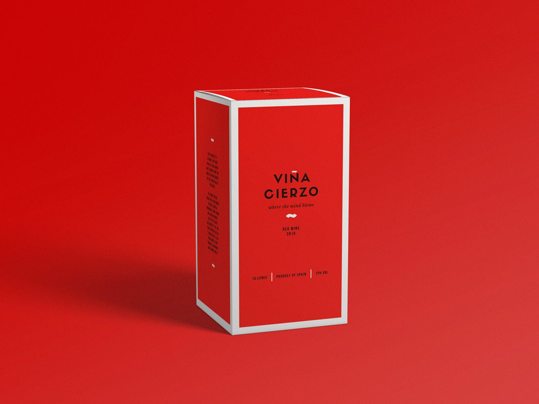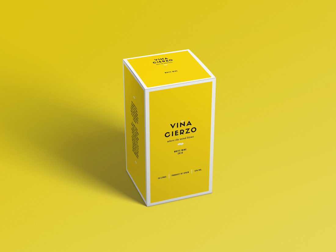 Diseño de marca, etiqueta de vino y packaging para la gama de vinos “Viña Cierzo”. Esta marca creada para la exportación del producto hace honor a su tierra de origen: Aragón. Tanto el proceso creativo de naming como los colores escogidos evocan nuestra tierra, sus costumbres y su gente. El resultado final abarca dos variantes de vino: un tinto con etiqueta roja y un vino con etiqueta amarilla. Para mejorar la percepción del producto, la marca se comunica bajo el claim «where the wind blows», que significa «donde el viento sopla» y hace referencia a nuestro característico viento comúnmente llamado «cierzo».