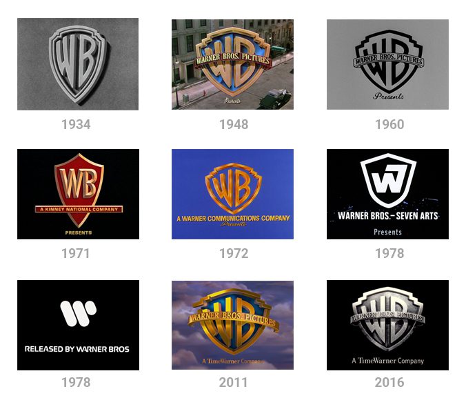 Los logotipos de los estudios cinematográficos como Paramount Pictures, Disney o Warner Bros. evolucionan a lo largo de los años pero sabiendo mantener durante décadas su forma, emblemas o su esencia. Este hecho hace que todos reconozcamos al instante a la compañía cinematrográfica a la que pertenecen las películas que vemos.Salvo en los años 70-80 en los que se aprecia un cambio brusco en la forma del logotipo debido a la compra de la compañía, Warner Bros ha mantenido la forma adaptando en casi cada película el logotipo a la temática de la misma mediante diferentes colores, fondos y acabados.