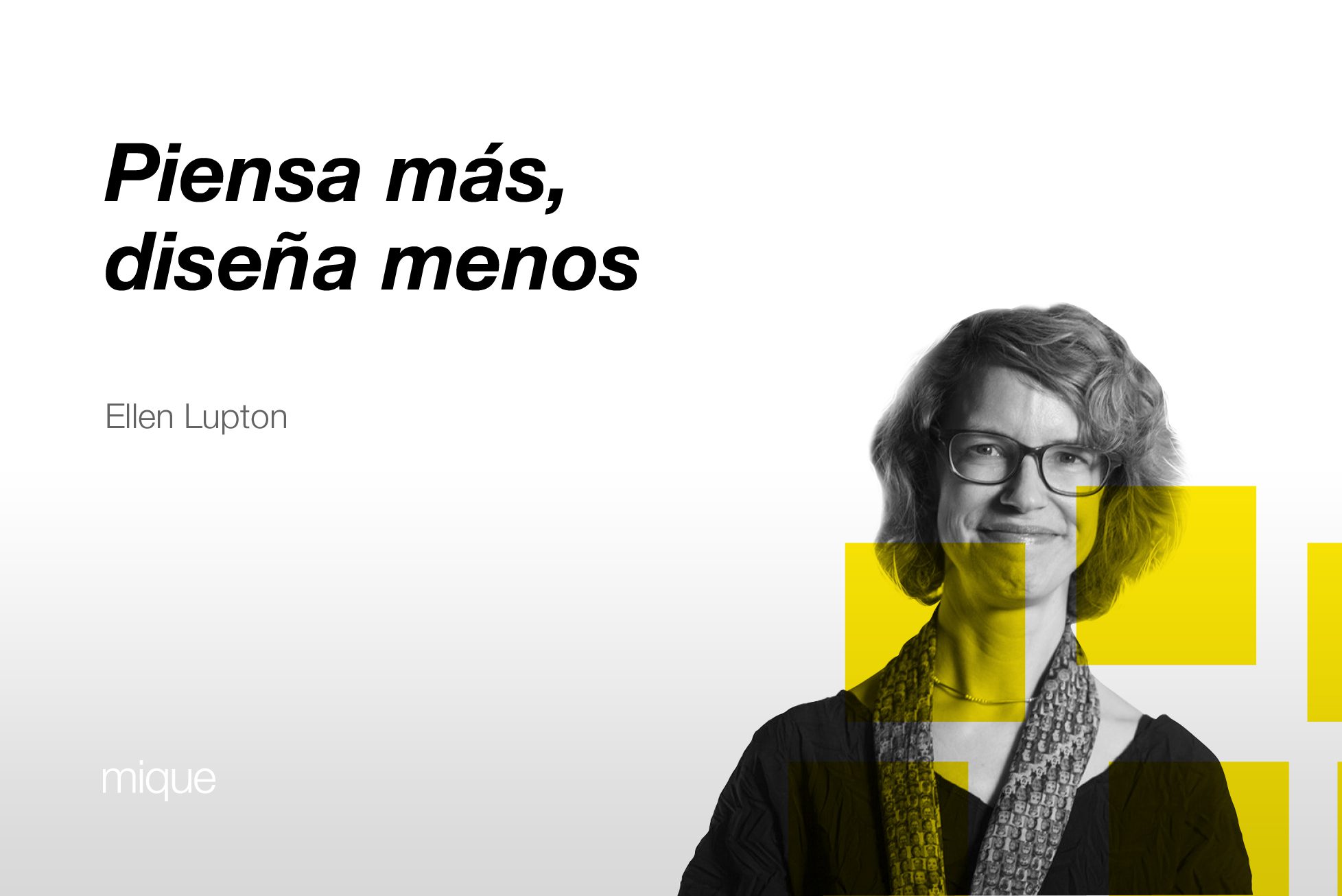 Tan obvio, tan cierto, que nos obliga a terminar con la máxima de la diseñadora gráfica estadounidense, Ellen Lupton, que títula este artículo: «piensa más, diseña menos».